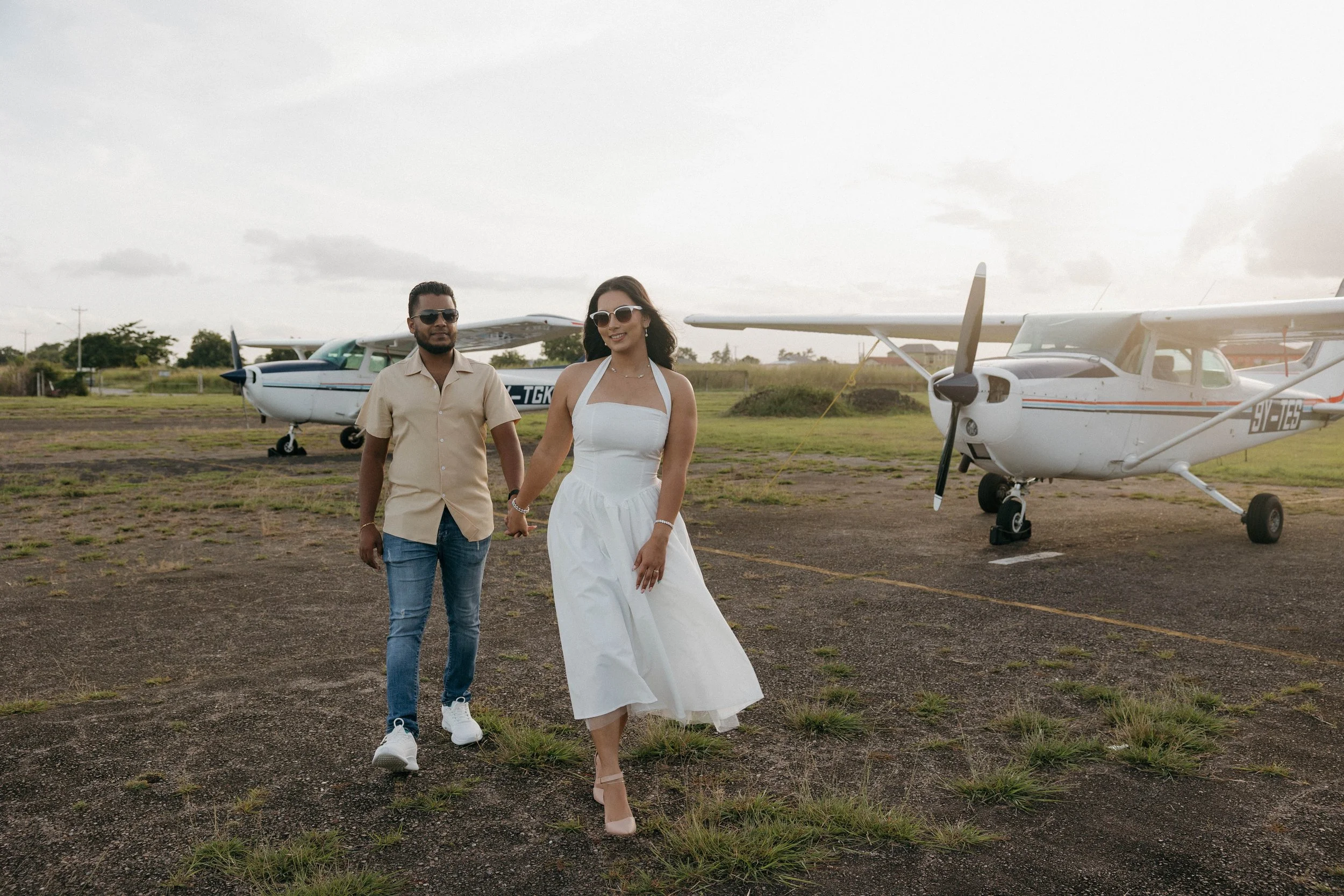 When your fiancé is a pilot of course your engagement session is with an airplane. Anandi and Vijay are about to tie the knot but first we had such a fun evening capturing their engagement. This shoot was special because Anandi is my cousin. I may not be capturing her wedding *rather be a guest at family weddings*, I made sure to do her engagement session. Looking forward to dancing on the dance floor without a camera. Let's take a took at a Sunday evening spent capturing a pilot's love story.